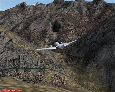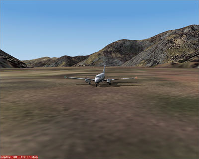 finally land on a ledge cut into the mountain, i.e., the runway. More